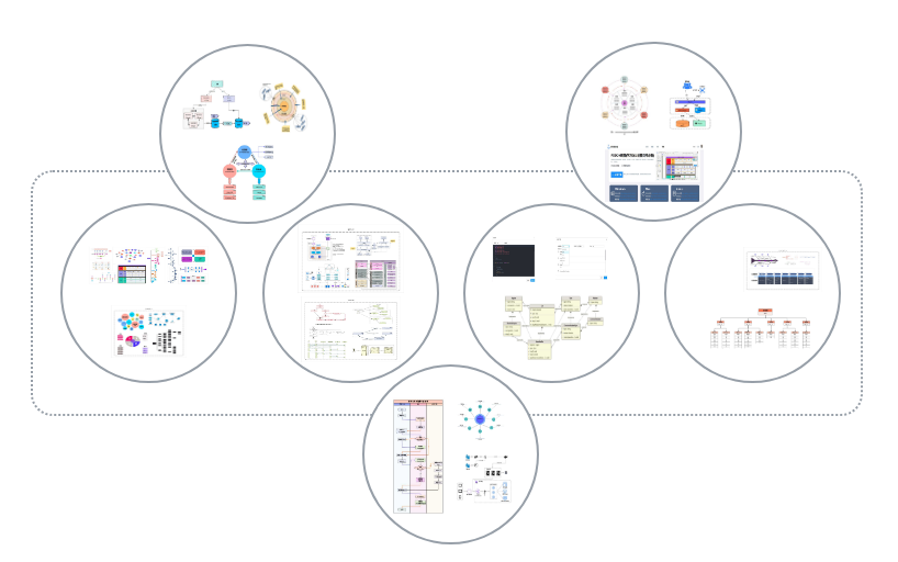 ◇ 支持多种类型绘图,提供了对线框图、流程图、架构图、思维导图、UML系列图、BPMN、网络拓扑图、ER图、数据库模型图、韦恩图、鱼骨图等等绘图的全套支持